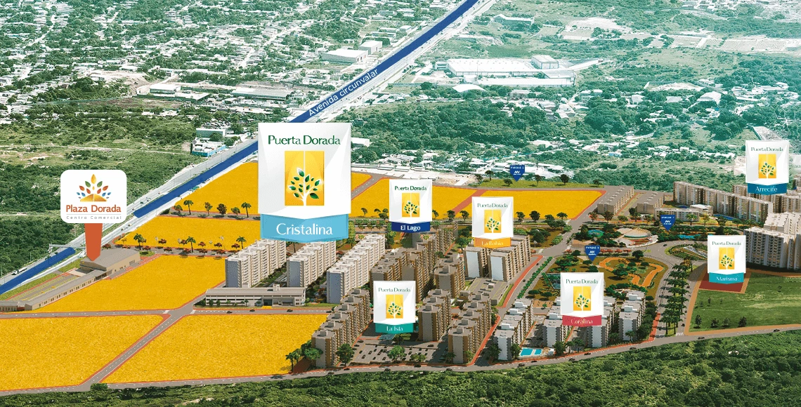 CRISTALINA es un proyecto desarrollado por la constructora MARVAL. Se encuentra ubicado en el desarrollo urbanistico de Puerta Dorada en Barranquilla, Es un conjunto de viviendas tipo VIS, consta de 17 torres de 11 pisos, para un total de 748 apartamentos.
